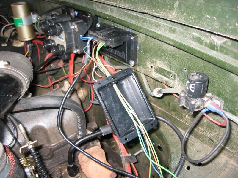 | Here is the Megajolt, wired in. The white wire at the top is the | |